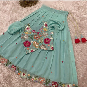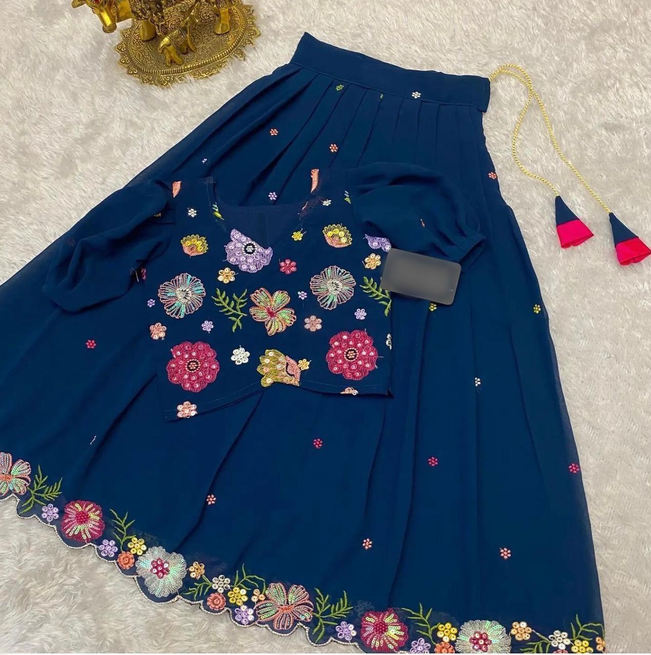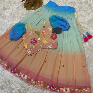 Kids Embroidered Georgette Lehenga with Sequin Blouse – Custom Tailored