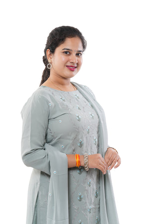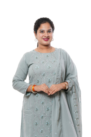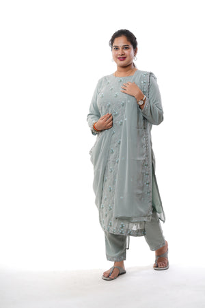 Elegant Grey Georgette Embroidered 3-Piece Kurti Set
