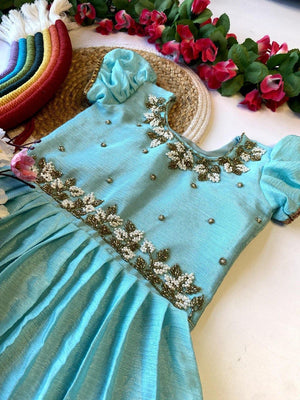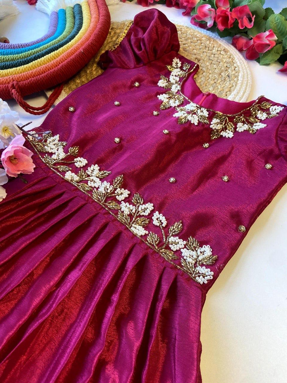Elevate your little one’s style with our exclusive kids gown featuring a soft, flowing chinnon flair paired with a stunning handwork top. Designed with perfect color matching, this gown blends comfort, elegance, and craftsmanship — ideal for weddings, parties, and special celebrations.