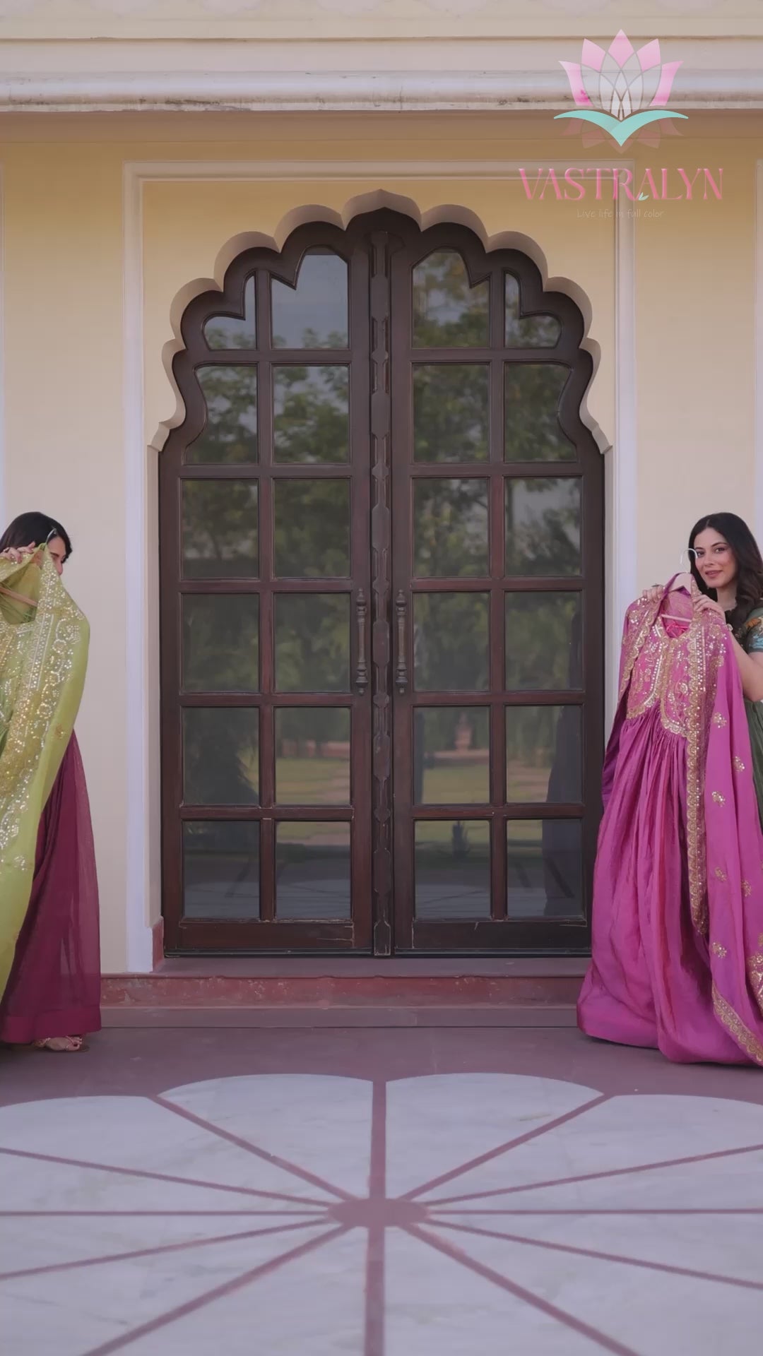 Step into royalty with this stunning Pink Gold-Crush Gown Set, crafted in luxurious fabric adorned with multi-color embroidery and delicate sequin work. The gown features a flattering 3.5-meter flair, full cotton lining, and a canvas-stitched structure for elegant fall and fit.