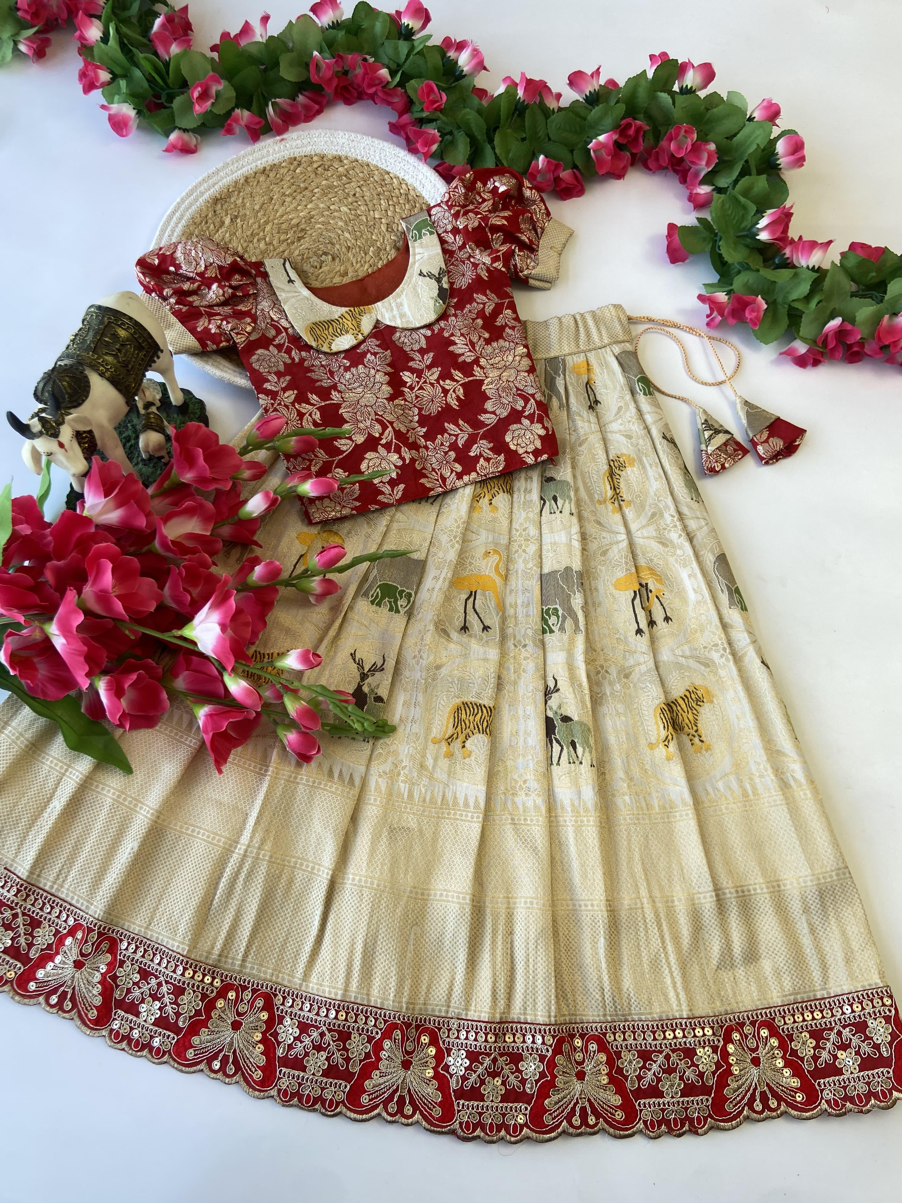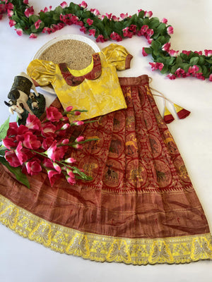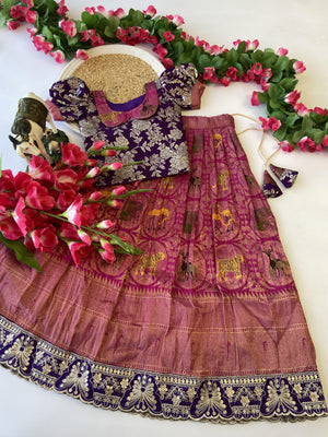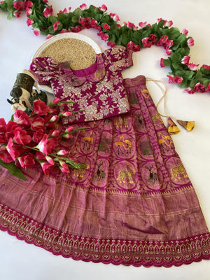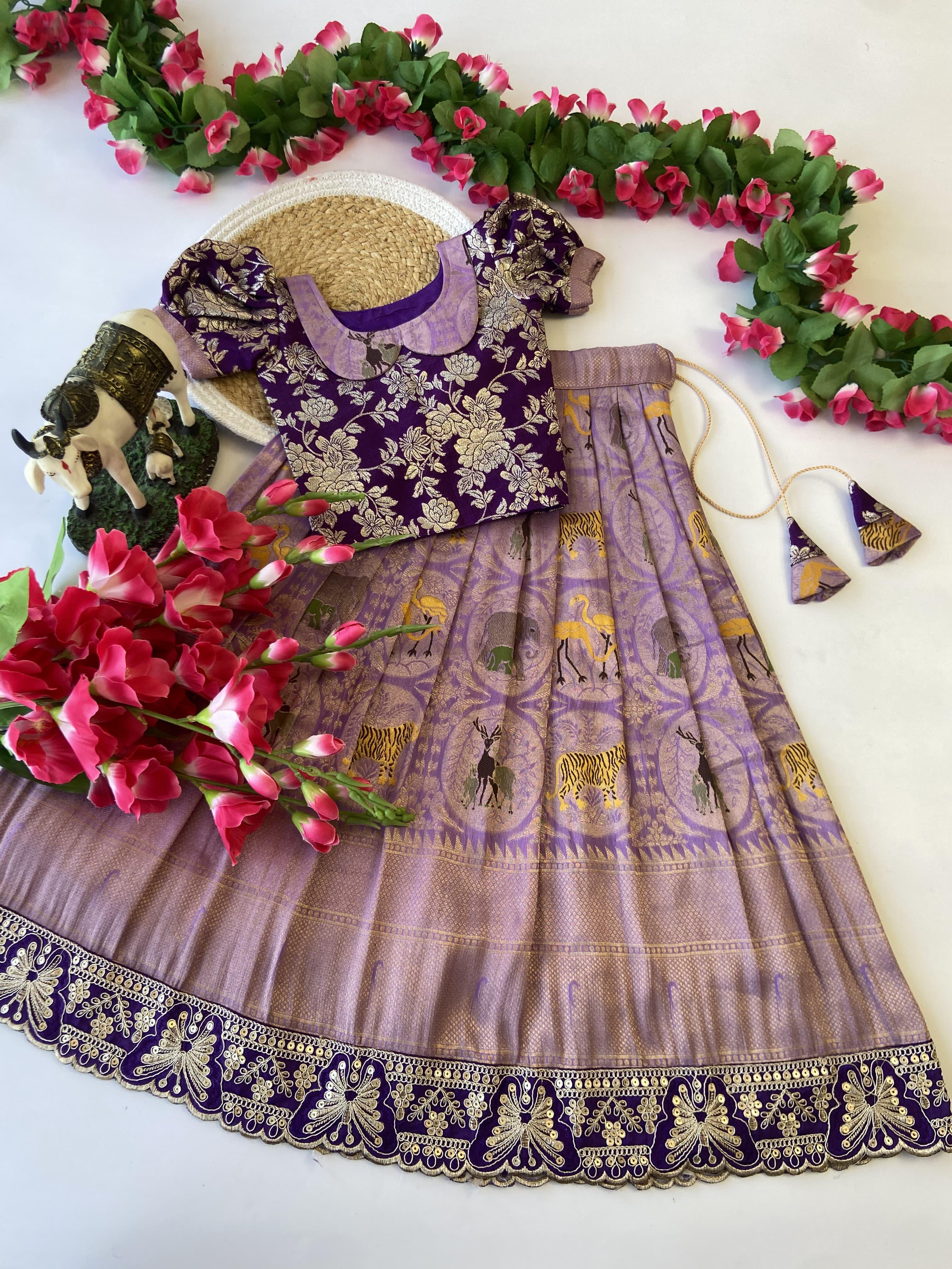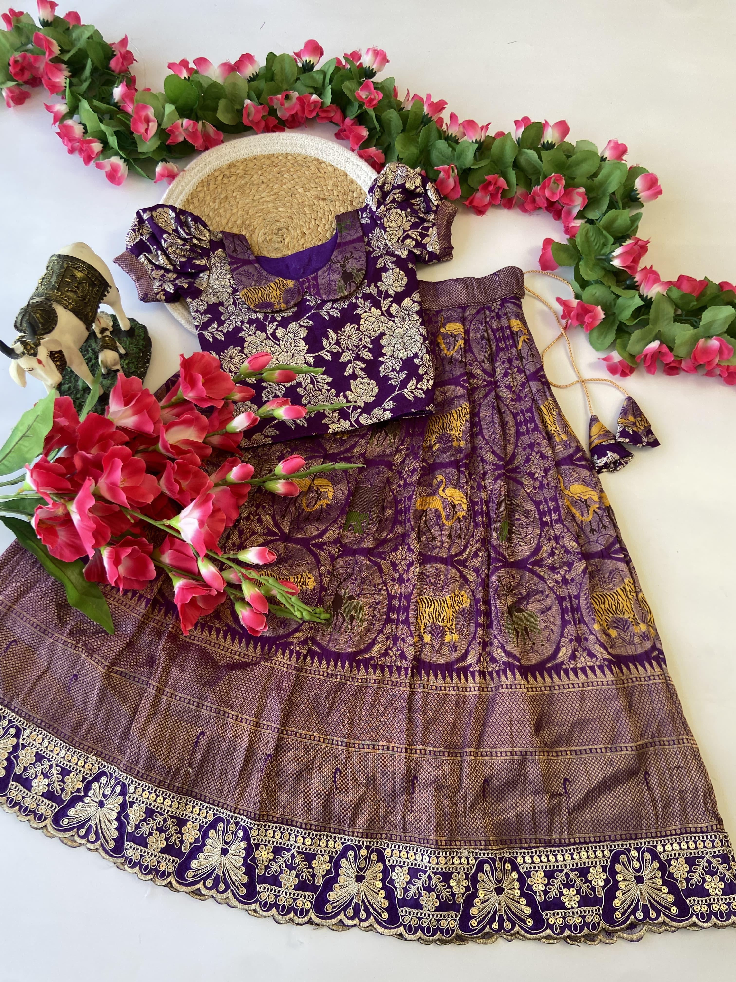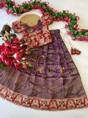 Traditional Pattu Paavadai & Sattai Dress – Banarasi Silk Lehenga with Viscose Dola Silk Blouse